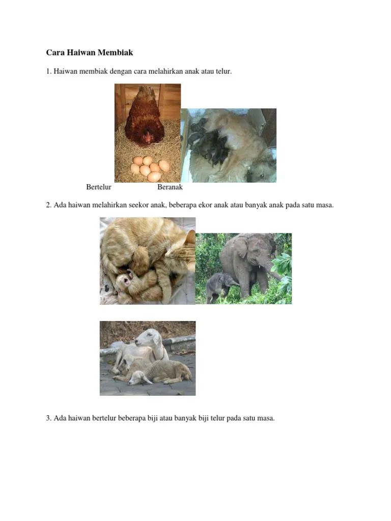 Haiwan bertelur , haiwan melahirkan anak susunan kumpulan. Hewan adalah hewan yang berkembang biak dengan cara melahirkan. Bukan hanya hewan laut saja . Kucing juga berkembang biak dengan cara melahirkan anak. Seperti hewan ovipar, hewan yang melahirkan juga memiliki. Setelah melahirkan, kucing menyusui anaknya. Namun, hewan lain bisa melahirkan jauh lebih banyak anak.